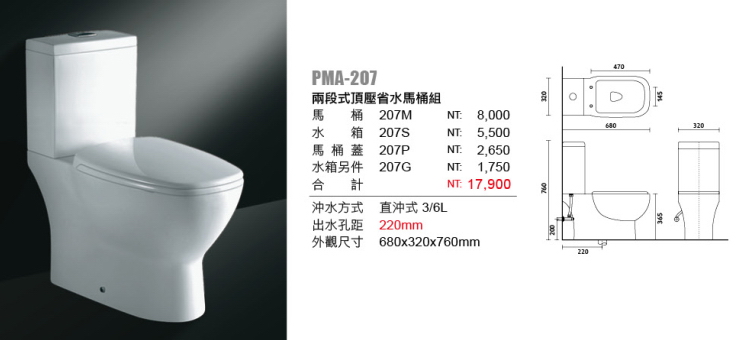 【大巨光】馬桶-特殊尺寸_PMA-207/出水孔距22CM