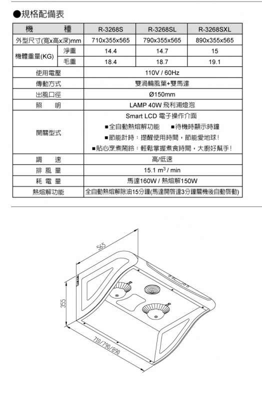 機體尺寸(寬×深×高)mm 790x 565 x 355