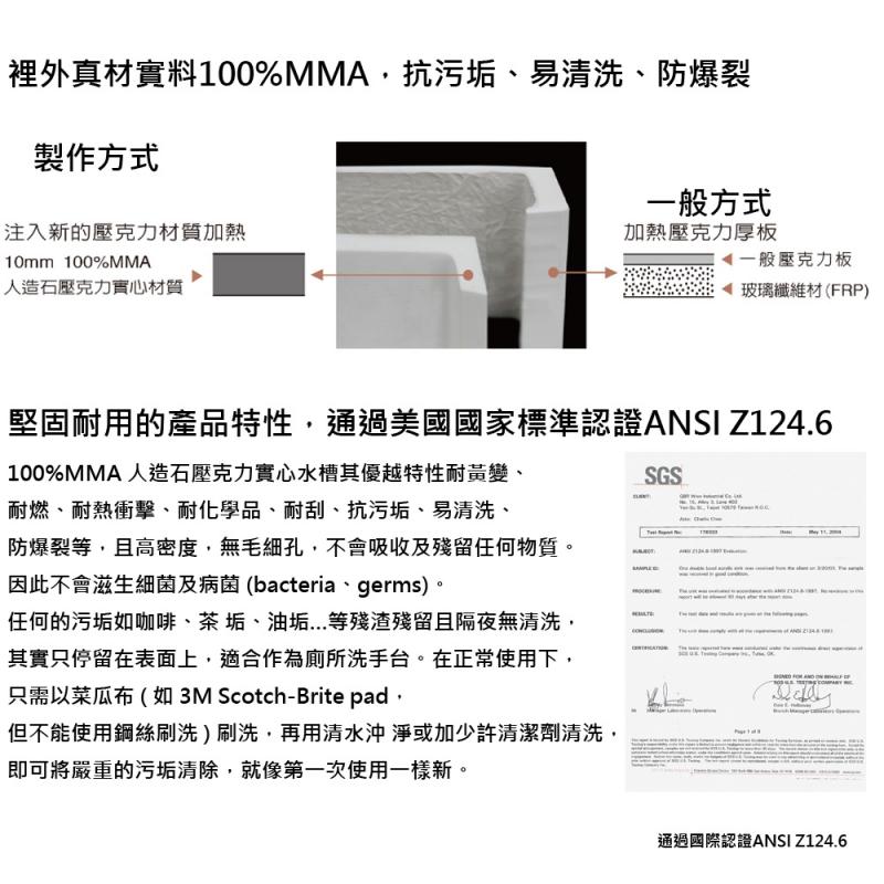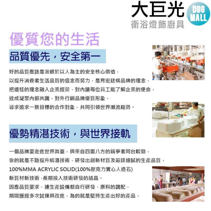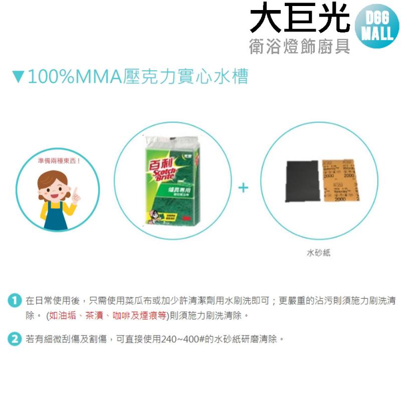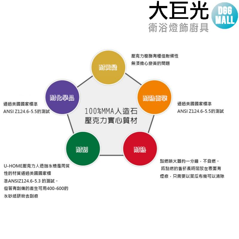 【大巨光】(U-103)方型臉盆100%MMA壓克力實心水槽-下崁