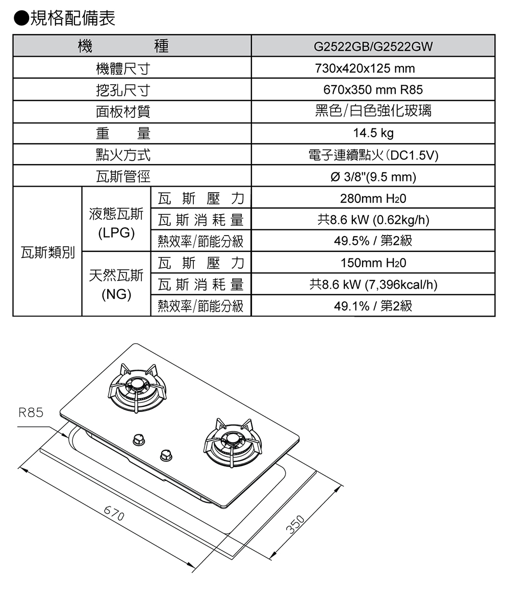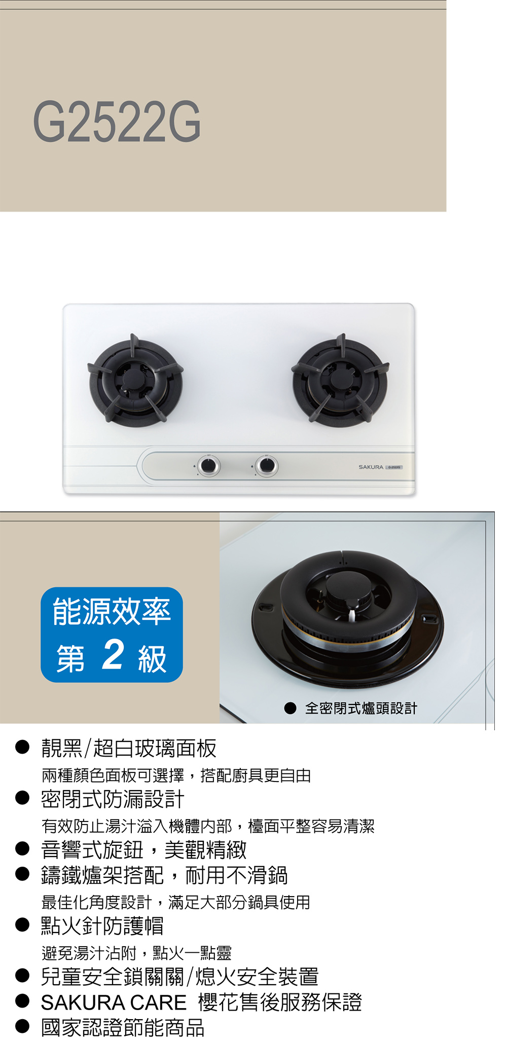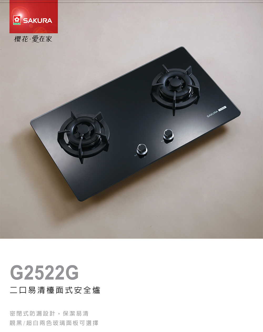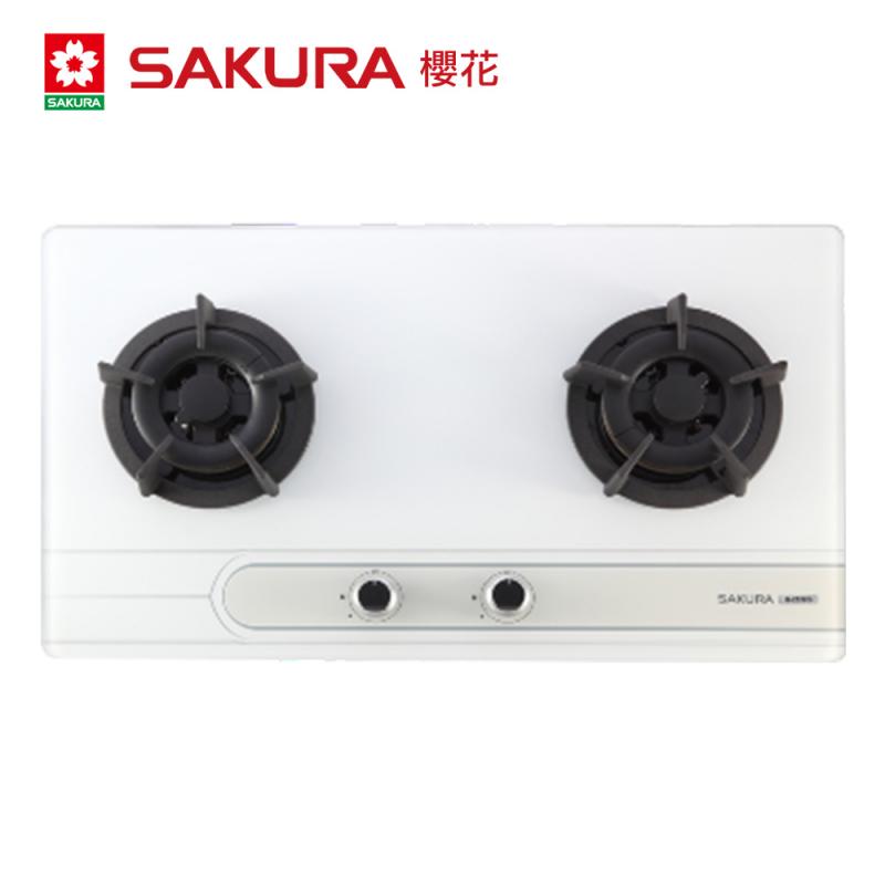 【大巨光】G2522GW 白色二口小面板易清檯面爐 崁入式檯面開關瓦斯爐-櫻花牌