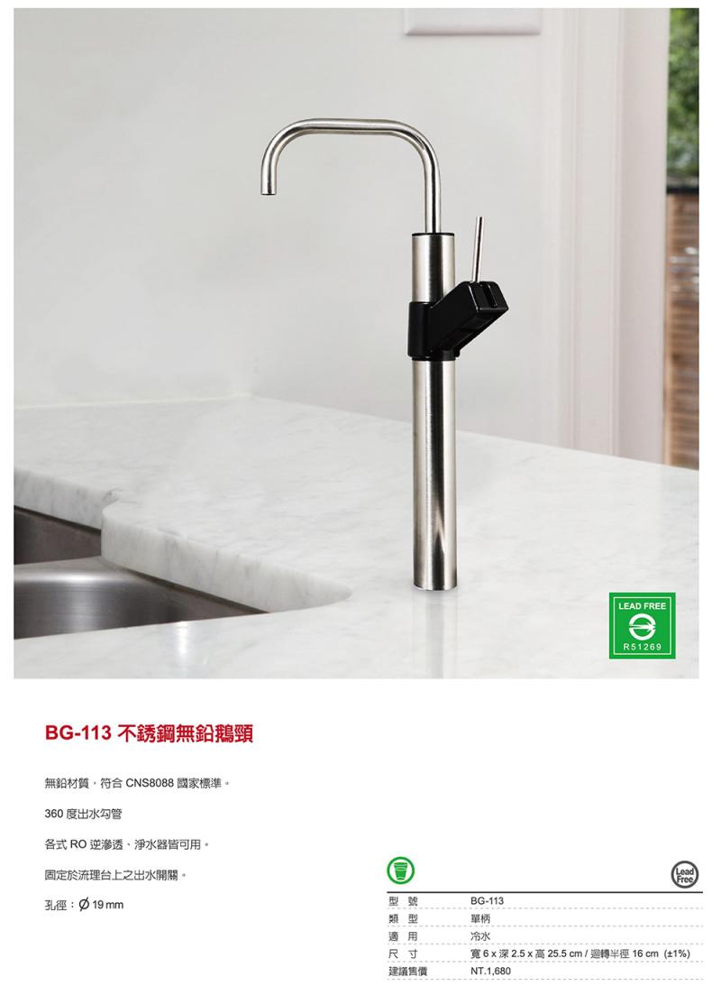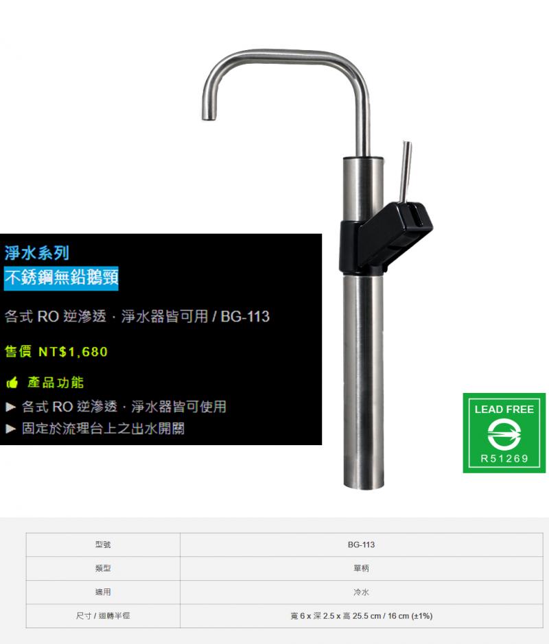 【大巨光】BG-113不銹鋼無鉛鵝頸 適用各式 RO 逆滲透,淨水器