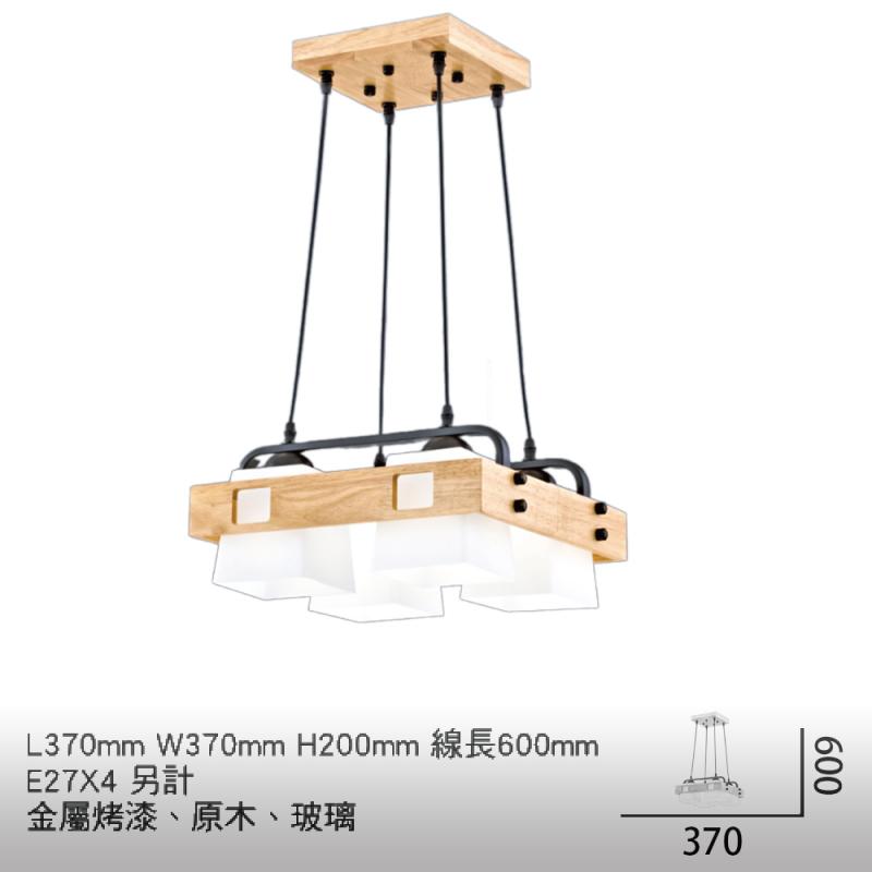 【大巨光】北歐風E27 四燈 吊燈_小(LW-12-0731)D0785 C1382 金屬烤漆 原木
