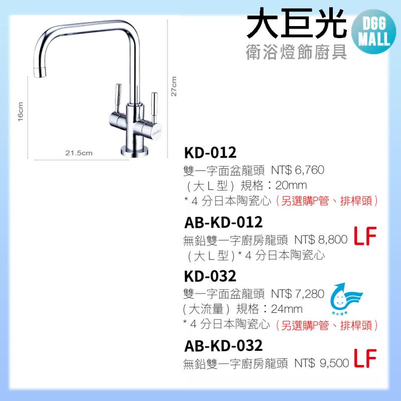 【大巨光】日本陶瓷心雙一字廚房檯面單孔雙槍水龍頭(KD-012)