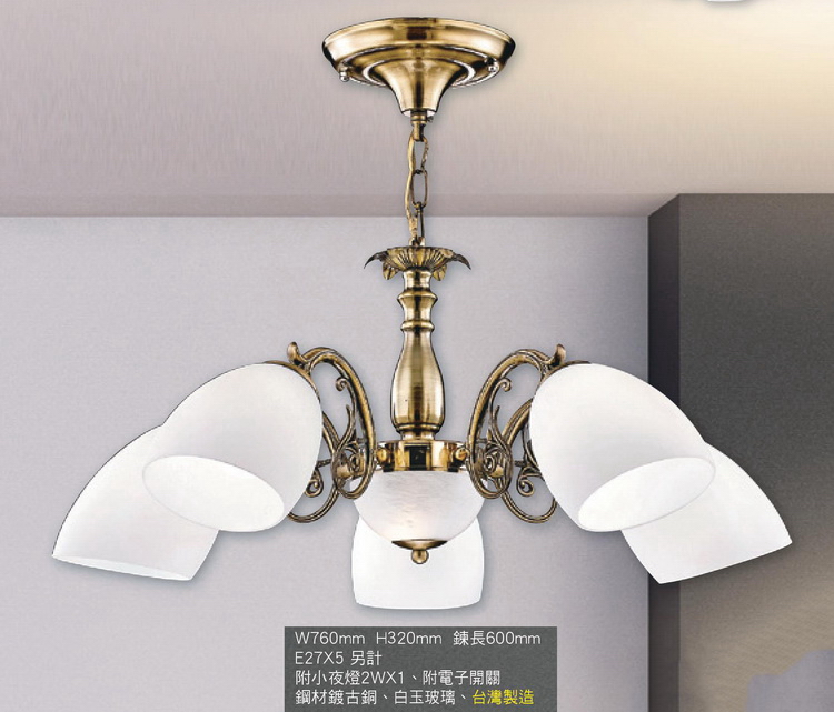 【大巨光】古典風E27*5 吊燈_中(LW-10-2082)