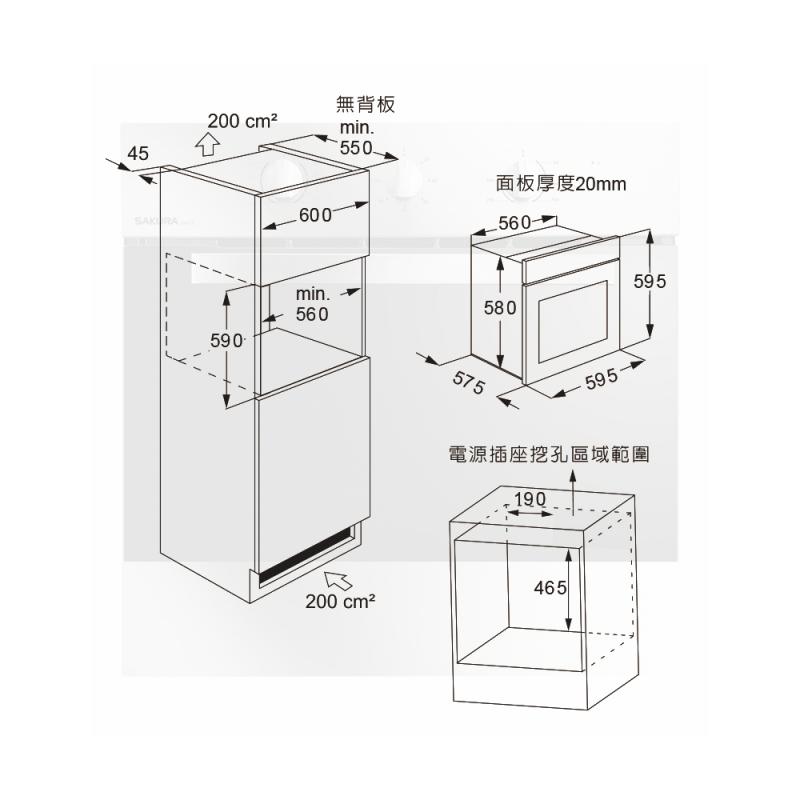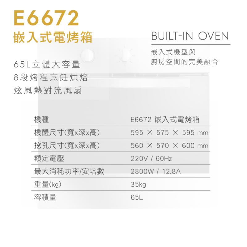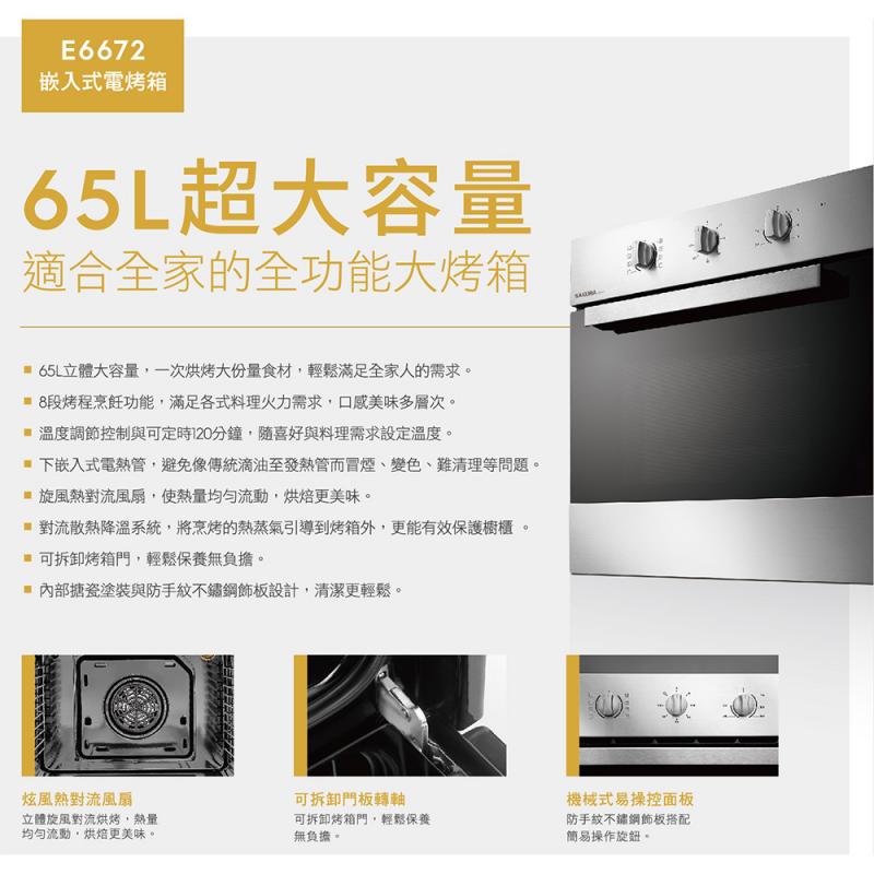 【大巨光】櫻花牌 E6672嵌入式電烤箱 65公升立體大容量