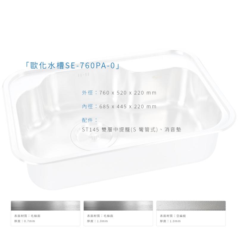 【大巨光】歐化水槽-不銹鋼-平接(SE-760PA-0)毛絲面 1.0mm