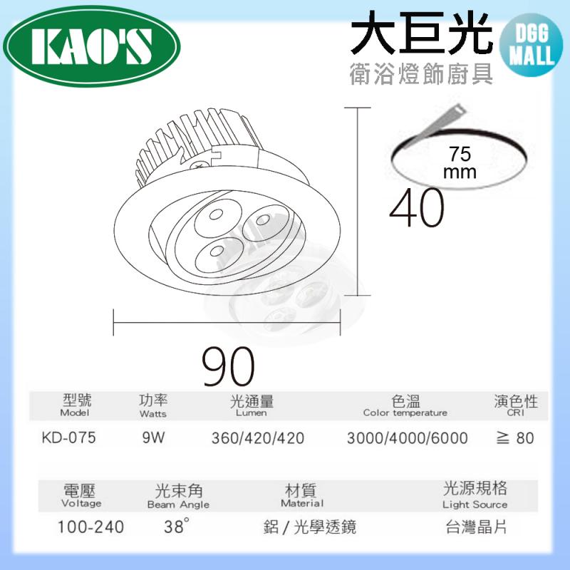 【大巨光】 LED 9W 櫥櫃小崁燈-霧銀色(KD-075)