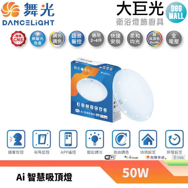 【大巨光】LED 50W OK Google智慧聲控遙控吸頂燈(黃光~自然光~白光)LED-CES50-TWM