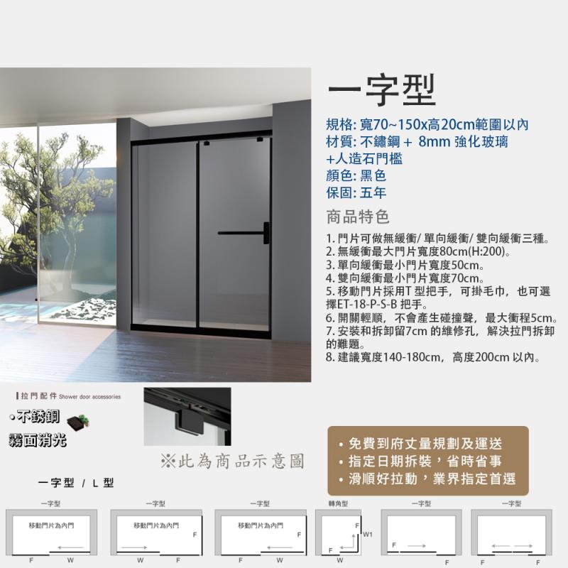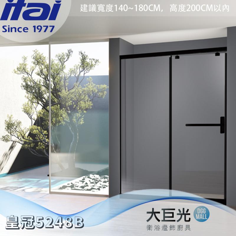 【大巨光】皇冠5248B 一字二門淋浴拉門_黑色緩衝式淋浴門/寬150內 雙緩衝/不鏽鋼(8mm強玻) ITAI