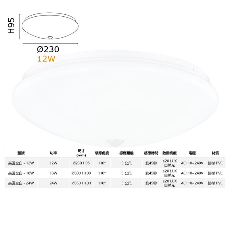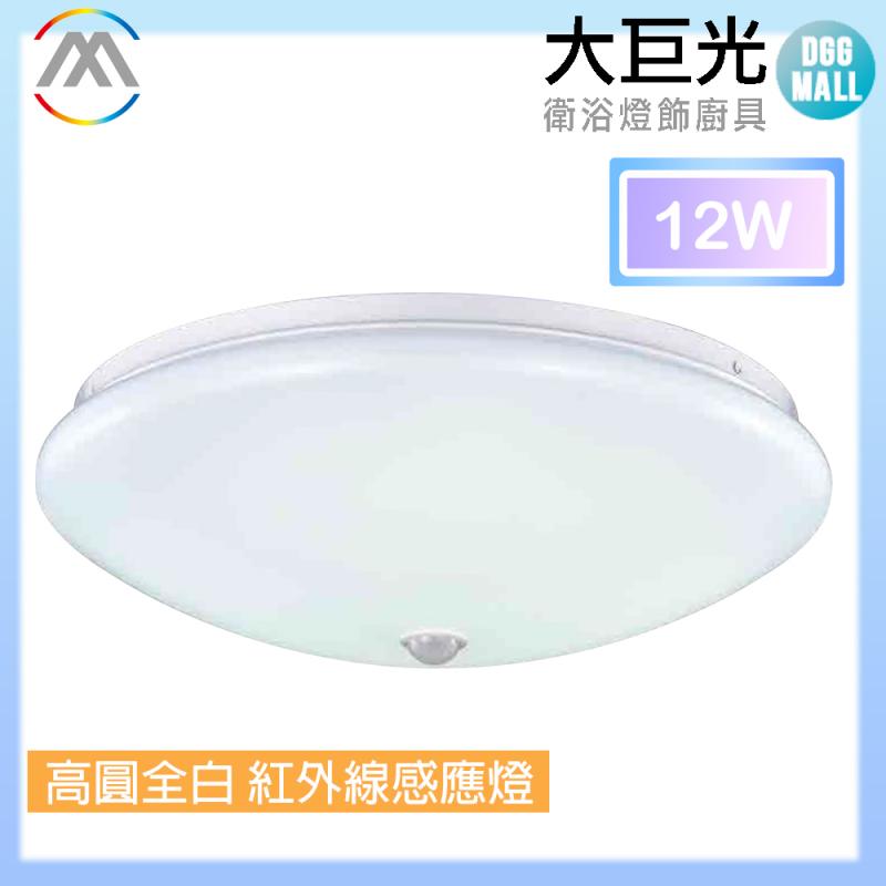 【大巨光】March 高圓全白 紅外線感應燈 LED 12W