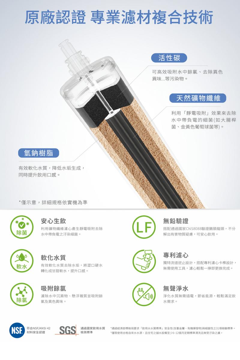 配件包:濾心座、濾心(除菌軟水雙效濾心)、鵝頸龍頭組 、PE水管、進水三通、減壓閥、漏水斷路器、保證卡、安裝配件