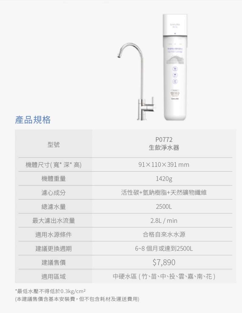 【大巨光】SAKURA 櫻花 生飲淨水器 P0772
