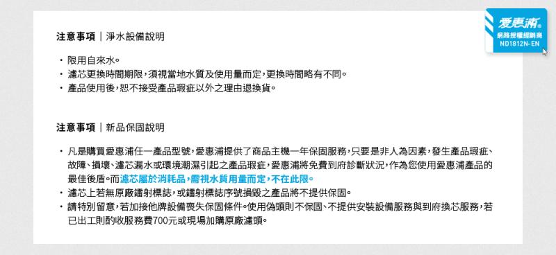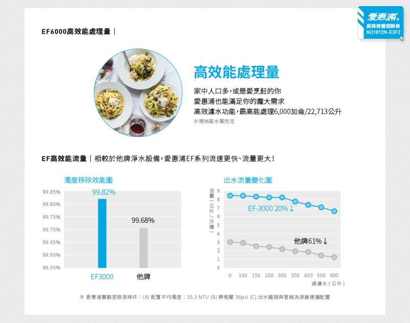 7.上述為愛惠浦實驗室建議,出水量仍需視實際環境條件為主