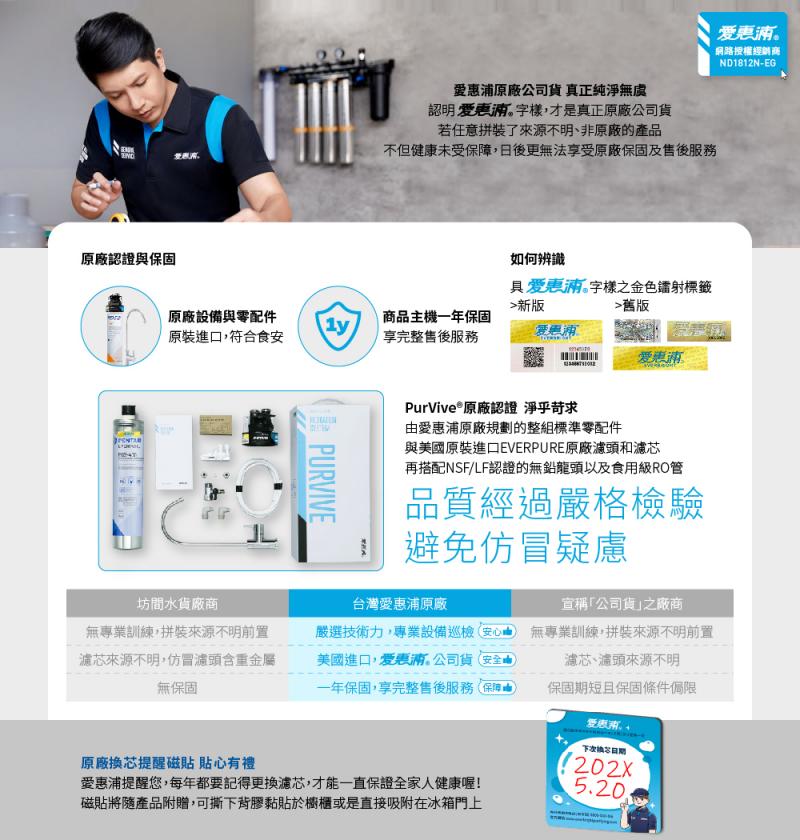 【愛惠浦】PurVive Duo-EF6000整合式淨水設備-雙管 RL2整合式吊架組+PF101前置濾心