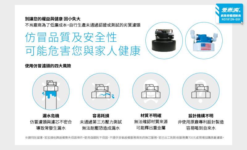 5.家用濾心不建議用於營業用途,營業用濾心請另外來電洽詢。提醒您!若家用濾心使用在營業用途,導致濾芯使用週期縮短將不保固,造成不便,請見諒。