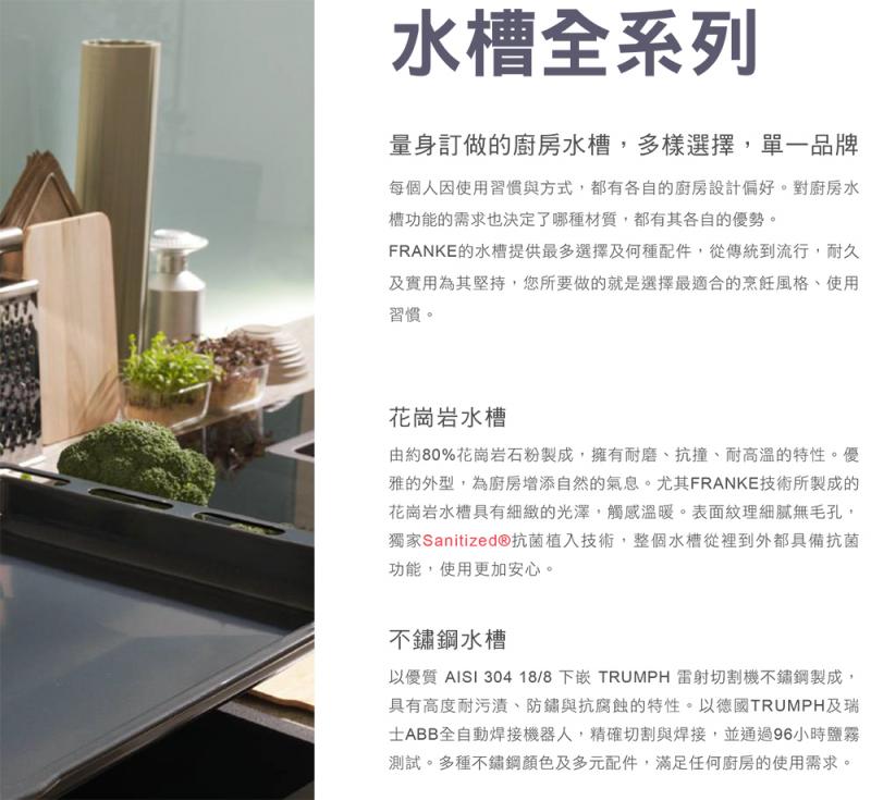 【大巨光】瑞士FRANKE 花崗岩廚房水槽(MRG 610-37 三色可選)