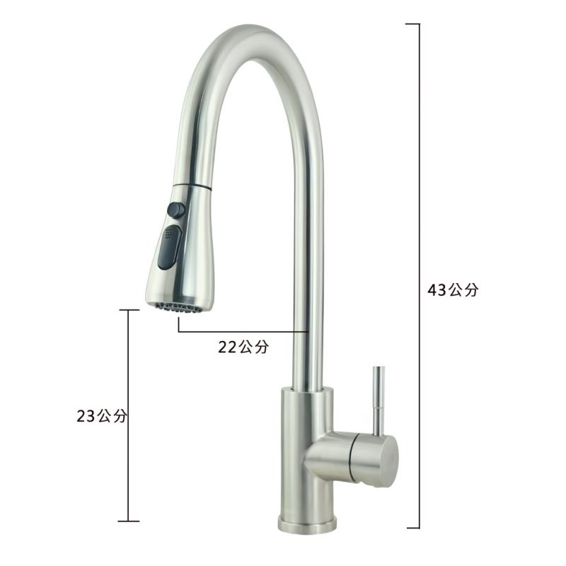 【大巨光】304不鏽鋼拉絲 廚房檯面水龍頭 5040 立式 抽拉龍頭