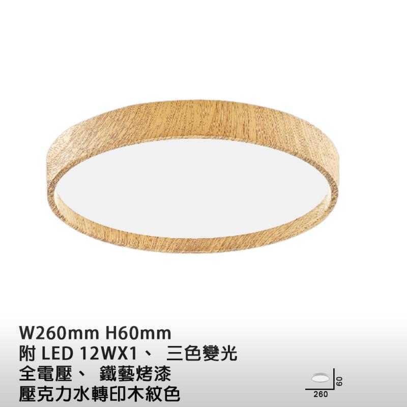 【大巨光】現代風 附LED 12W 吸頂燈-單燈-LED(LW-12-3848)三色變光 全電壓、鐵藝烤漆 壓克力水轉印木紋色