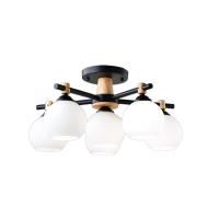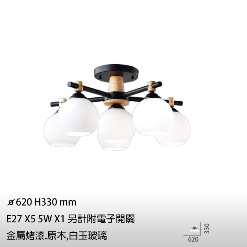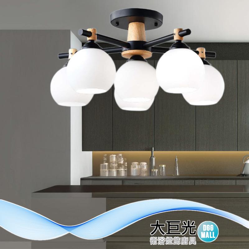 【大巨光】現代風 E27X5 半吸頂燈-中(MG-1741) 附電子開關 金屬烤漆.原木,白玉玻璃