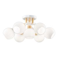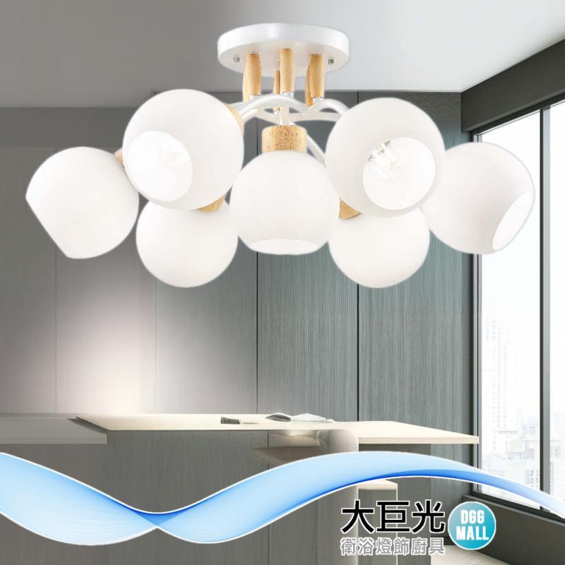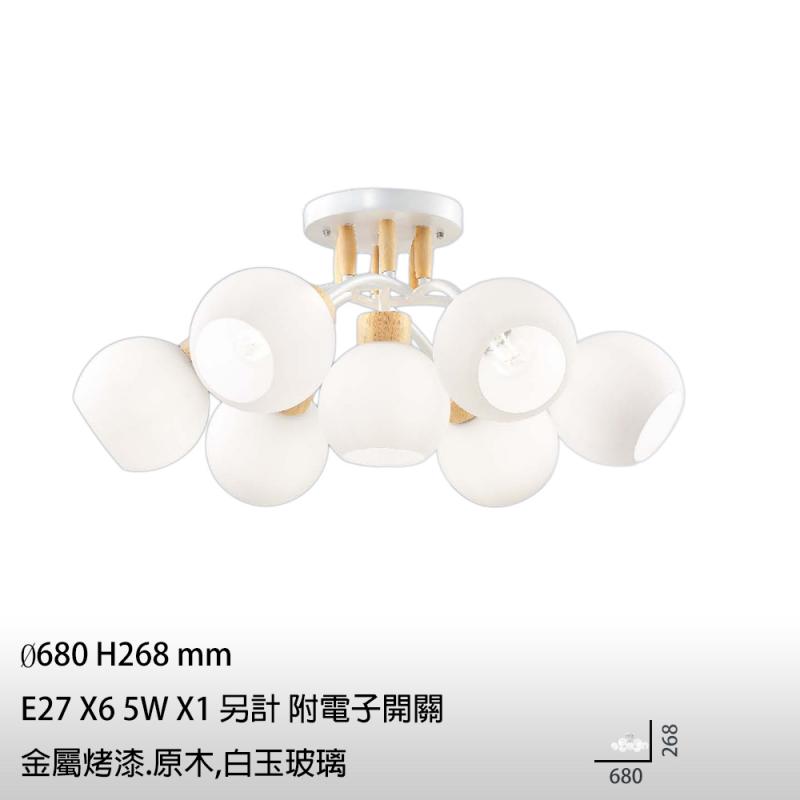 【大巨光】現代風 E27X6 半吸頂燈-中(MG-1751) 附電子開關 金屬烤漆.原木,白玉玻璃