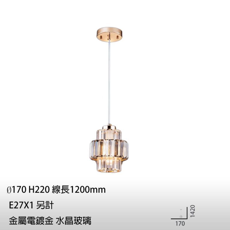 【大巨光】現代風 E27X1 吊燈_小(MG-2653)金屬電鍍金 水晶玻璃