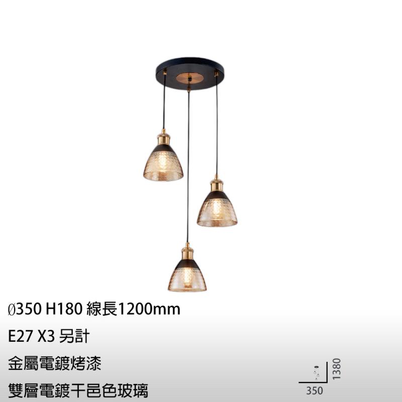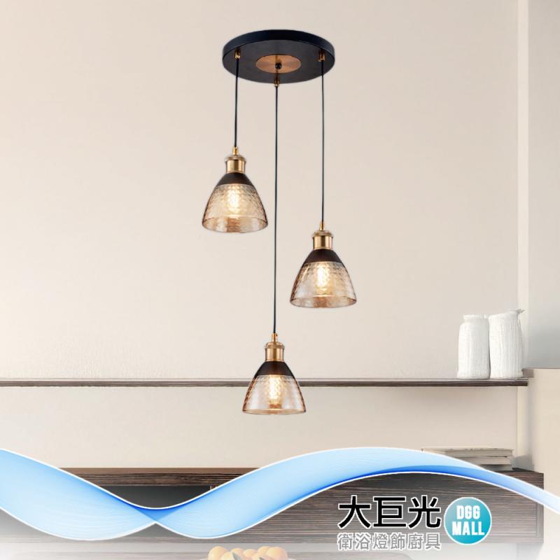 【大巨光】現代風 E27X3 吊燈_小(MG-2662)金屬電鍍烤漆 雙層電鍍干邑色玻璃