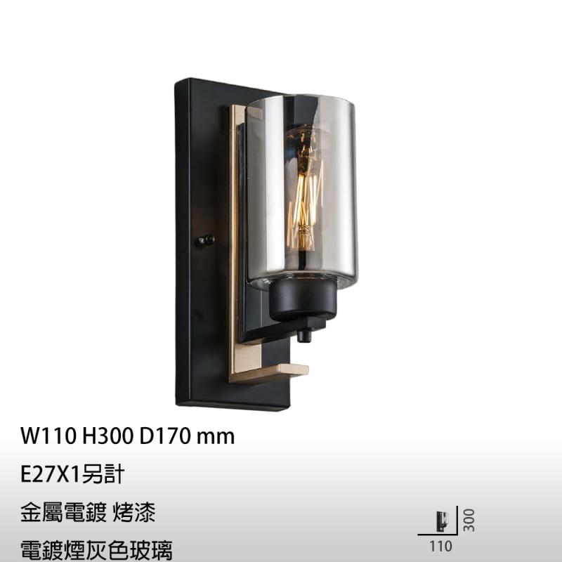 【大巨光】現代風-E27x1 壁燈(MG-3981) 金屬電鍍 烤漆 電鍍煙灰色玻璃