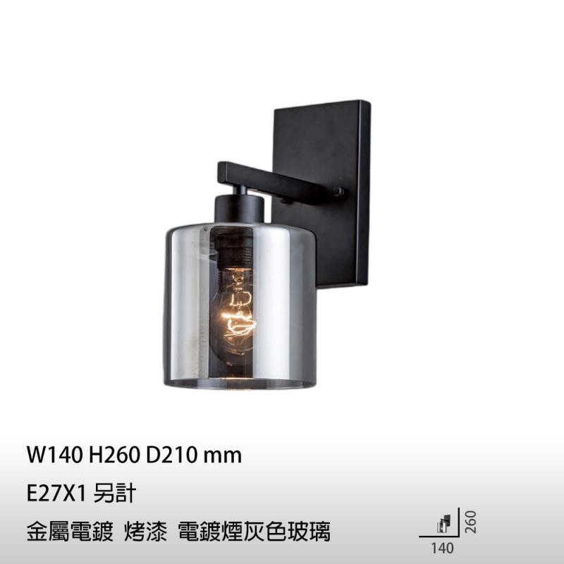 【大巨光】現代風-E27x1 壁燈(MG-3994) 金屬電鍍 烤漆 電鍍煙灰色玻璃