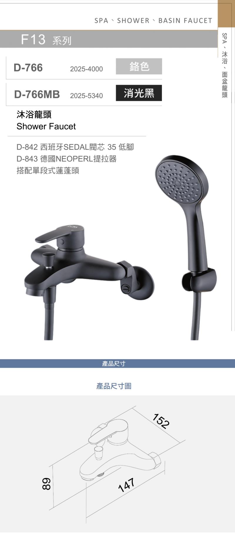 【大巨光】消光黑 D-766MB 沐浴龍頭 西班牙 SEDAL 閥芯 35 低腳 德國 NEOPERL 提拉器 搭配單段式蓮蓬頭