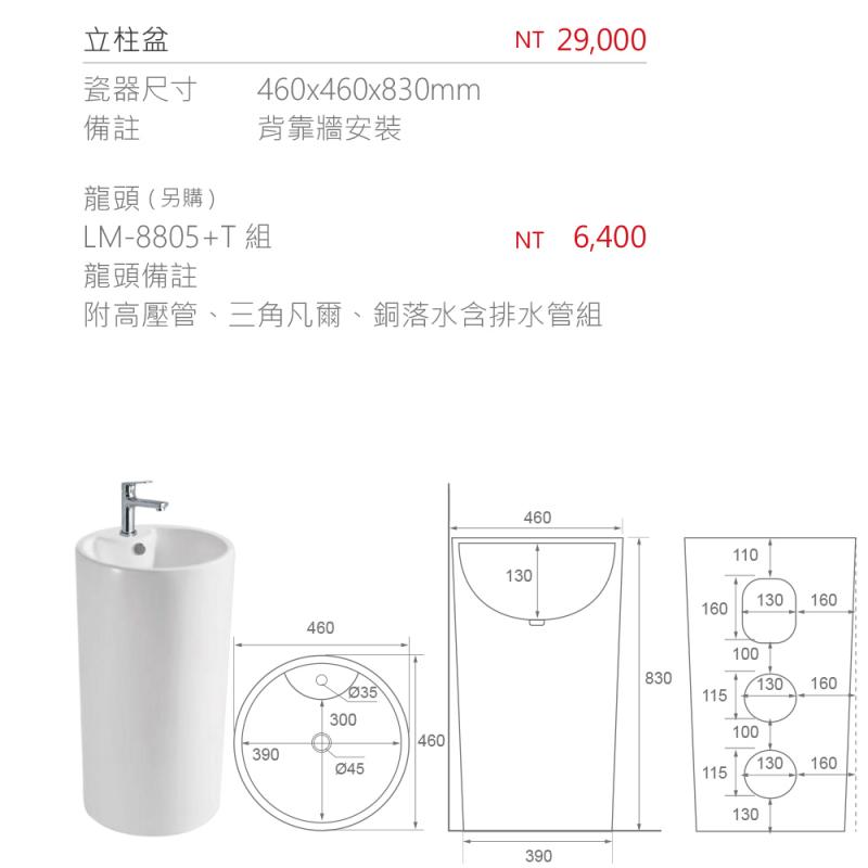 【大巨光】立柱盆 MA-1180-46(不含水龍頭)