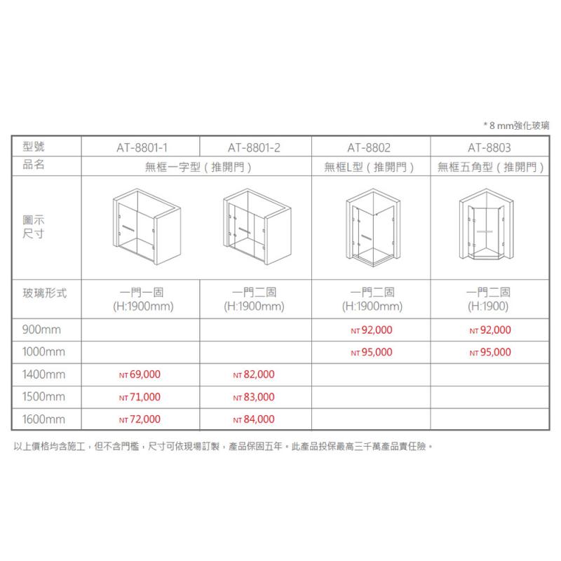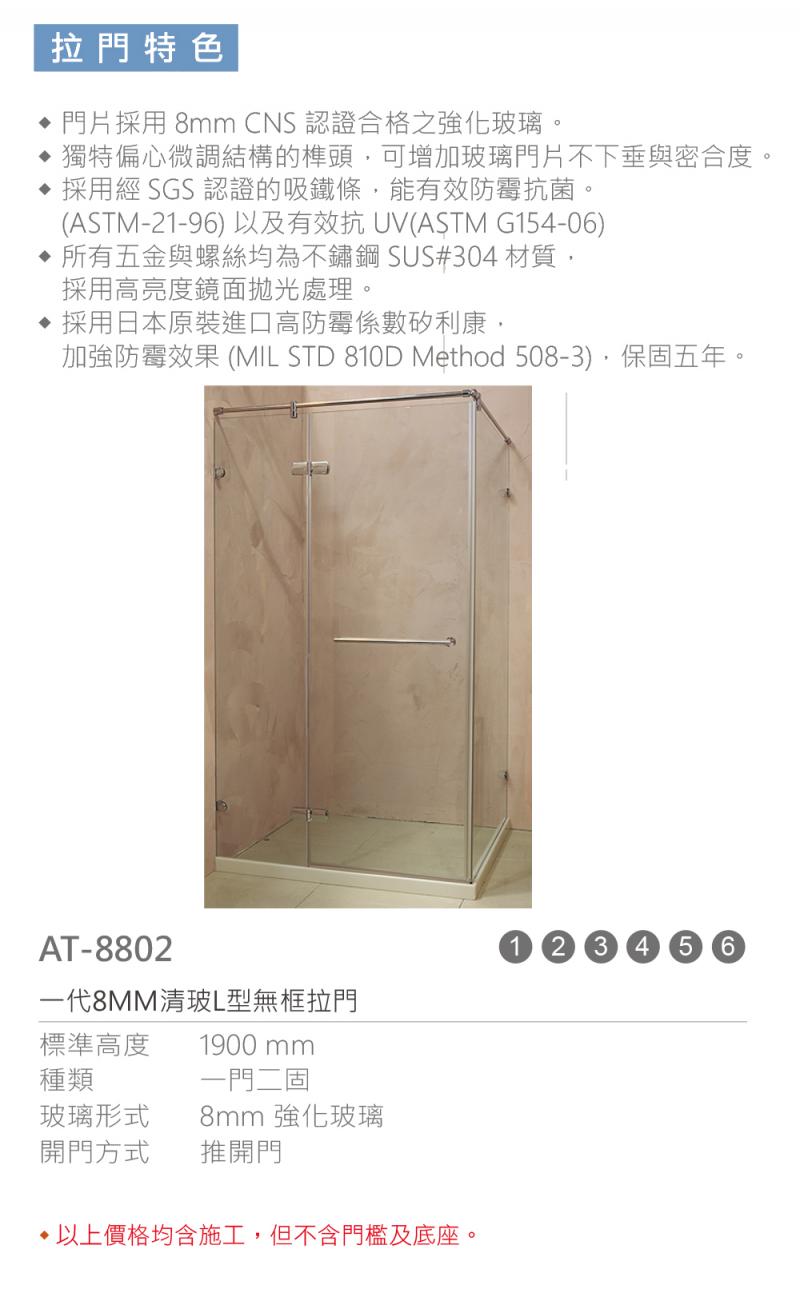 【大巨光】100公分 一代8MM清玻L型無框拉門 AT-8802 推開門 一門二固