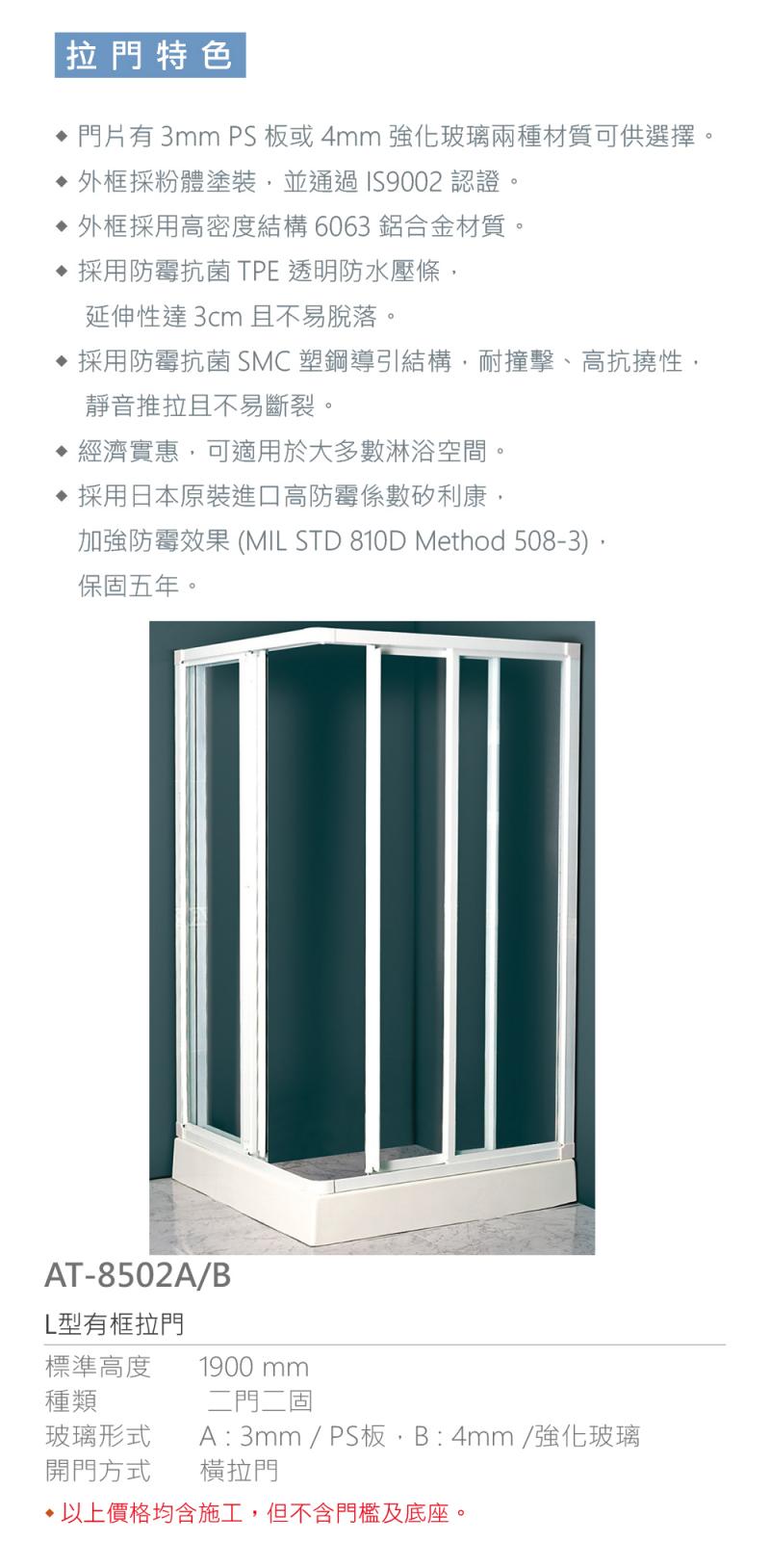 【大巨光】100公分 L型有框拉門 AT-8502A 二門二固 3mm / PS版 橫拉門