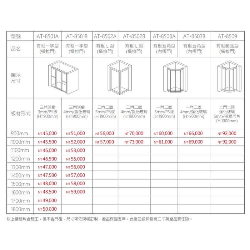 ◆ 以上價格均含施工,但不含門檻,尺寸可依現場訂製;產品保固五年。此產品投保最高三千萬產品責任險。
