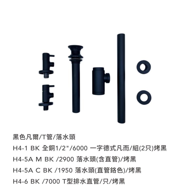 【大巨光】H-4-1-BK-H-4-6-BK 全銅1/2”一字德式凡而/組(2只)烤黑 4分&T型排水直管/只/烤黑