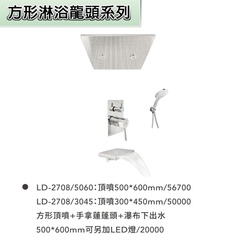 【大巨光】LD-2708-5060 三段式大頂噴入牆淋浴組 含LED燈 頂噴50*60