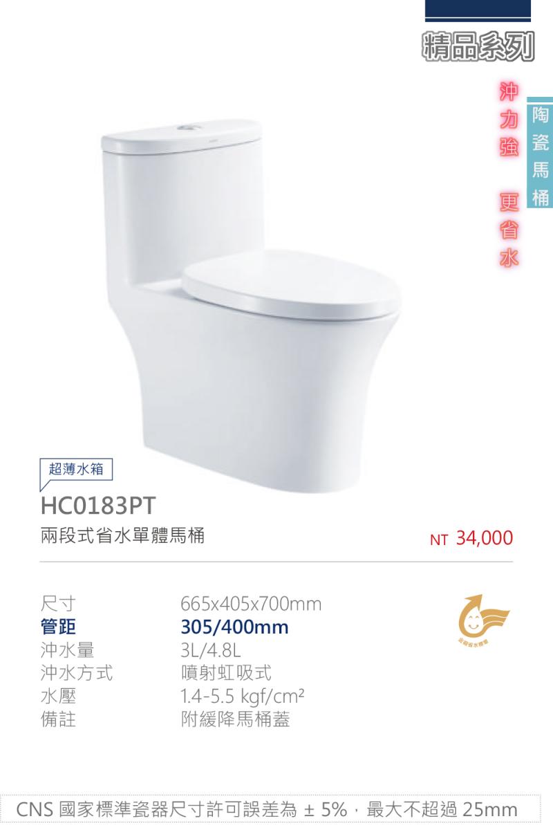 【大巨光】超薄兩段式省水單體馬桶 HC0183PT 超薄水箱 微晶抗汙釉