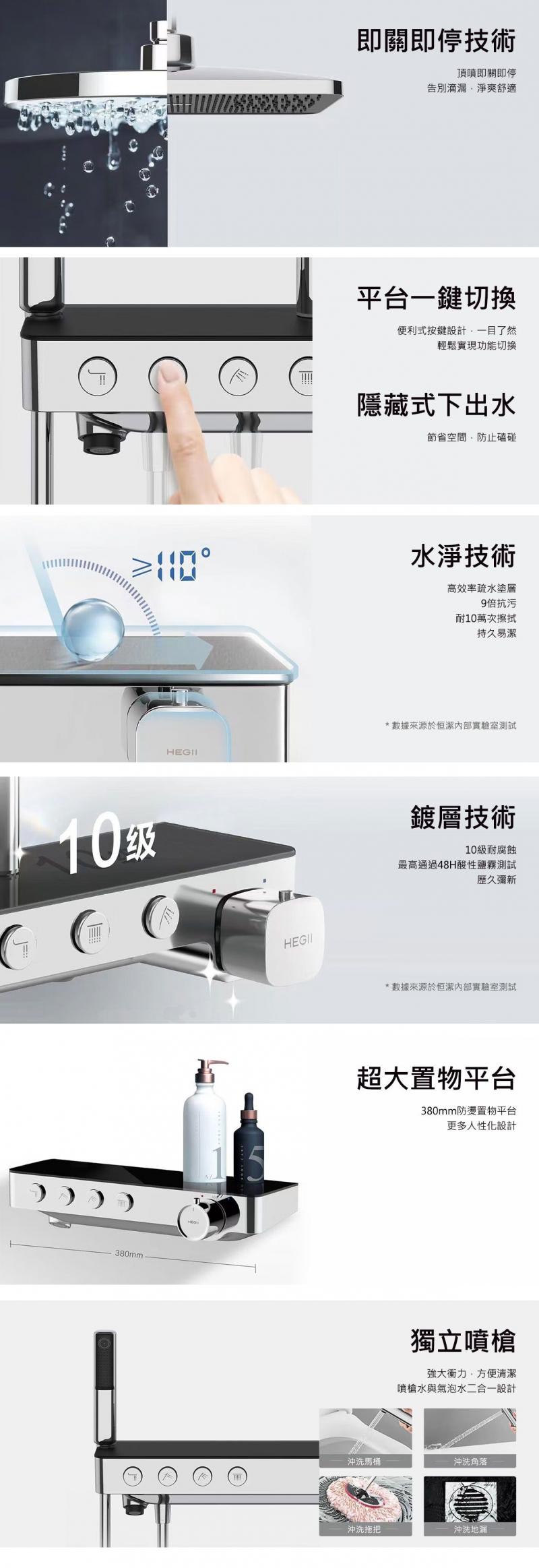 - ➤ 即關即停技術,頂噴即關即停,告別滴漏,淨爽舒適